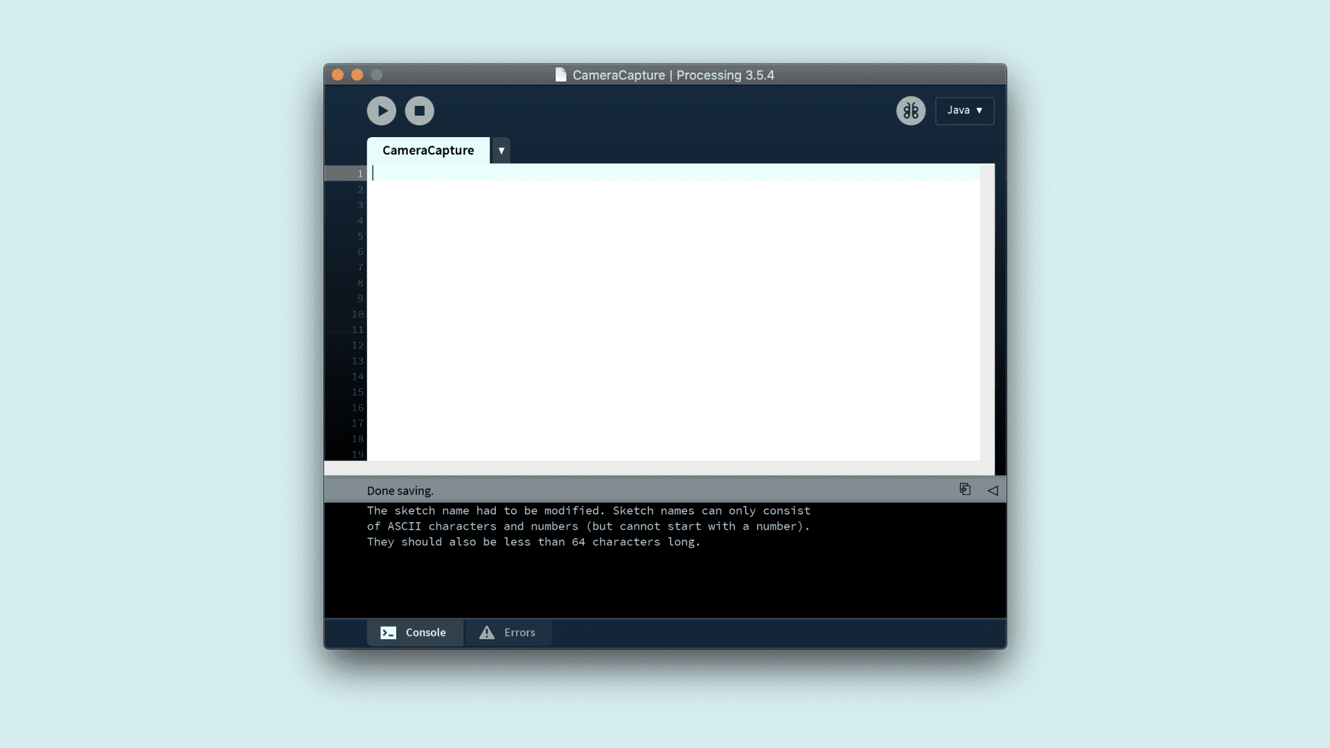 Open a new processing sketch file and name it